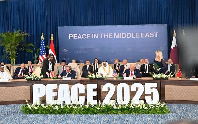 القاهرة - مباشر: استضافت مصر اليوم الاثنين، "قمة شرم الشيخ للسلام"، والتي رأسها كل من الرئيس عبد الفتاح السيسي رئيس جمهورية مصر العربية، والرئيس دونالد ترامب رئيس الولايات المتحدة الأمريكية، وشارك فيها رؤساء دول وحكومات كل من الأردن، قطر، الكويت، البحرين، تركيا، إندونيسيا، أذربيجان، فرنسا، قبرص، ألمانيا، المملكة المتحدة، إيطاليا، أسبانيا، اليونان، أرمينيا، المجر، باكستان، كندا، النرويج، العراق، الإمارات، سلطنة عمان، السعودية، اليابان، هولندا، وبارجواي، والهند، بالإضافة إلى كل من سكرتير عام الأمم المتحدة، والأمين العام لجامعة الدول العربية، ورئيس المجلس الأوروبي، ورئيس الاتحاد الدولي لكرة القدم، ورئيس وزراء المملكة المتحدة الأسبق.