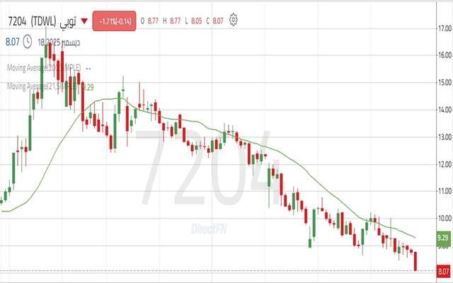 مباشر للأبحاث: يواصل سهم شركة العرض المتقن للخدمات التجارية "توبي" تحركاته داخل اتجاه هابط رئيسي ممتد منذ شهر مارس الماضي، حيث يتداول السعر ضمن قناة سعرية هابطة تعكس سيطرة واضحة للقوى البيعية على المدى المتوسط.