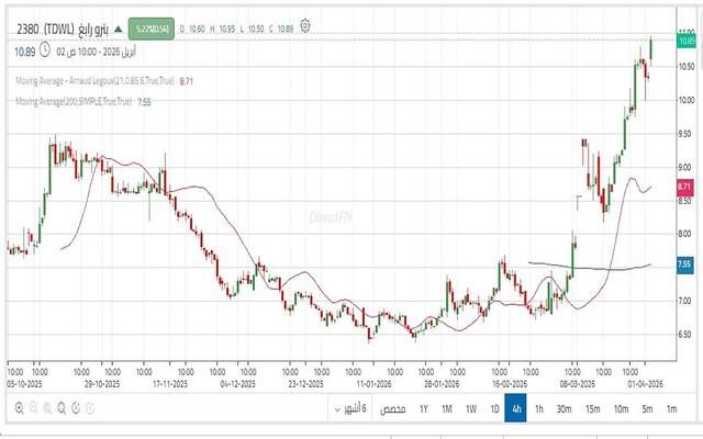 سهم "بترو رابغ" يواصل الزخم الصاعد, اليوم الخميس 2 أبريل 2026 11:46 صباحاً