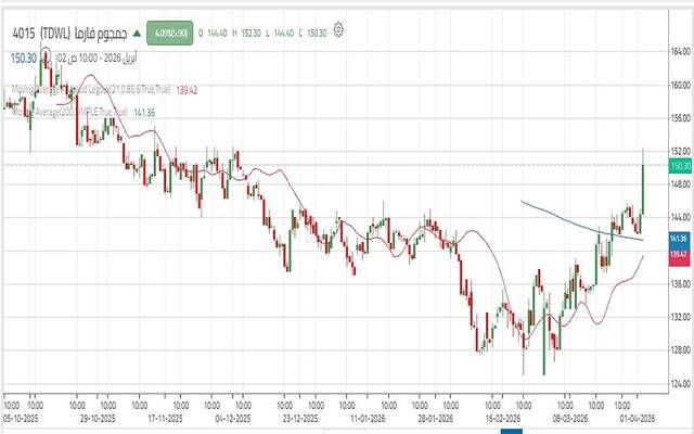 واستمر السهم في التحرك الصاعد وصولًا إلى مستوى 151.10 ريال، والذي يمثل مقاومة محورية هامة، حيث إن اختراق هذا المستوى والثبات أعلاه قد يدعم استمرار الاتجاه الصاعد نحو 154.30ريال – 156.40 ريال، يليه مستوى 160.50 ريال.