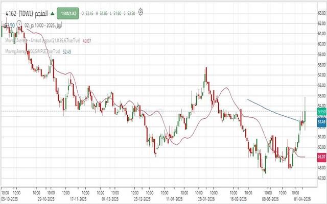 ويُعد الحفاظ مستوى 52.20 ريال أمرًا ضروريًا لتفادي الضغوط البيعية وللحفاظ على النظرة الإيجابية خلال الفترة القادمة.