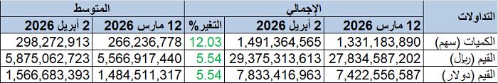 مباشر - ثابت شحاتة: شهد سوق الأسهم السعودية ارتفاعاً ملحوظاً خلال الأسبوع المنتهي في 2 أبريل 2026، في ظل صعود شبه جماعي للقطاعات، وسط تحسن السيولة مقارنة بالأسبوع السابق.