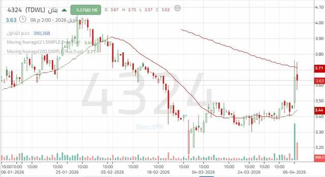 ارتداد سهم "بنان" من أدنى مستوياته التاريخية بدعم من أحجام التداول, اليوم الاثنين 6 أبريل 2026 05:13 مساءً