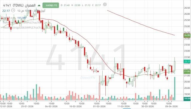 سهم "العمران" يختبر مقاومة النطاق العرضي, اليوم الأحد 12 أبريل 2026 01:23 مساءً